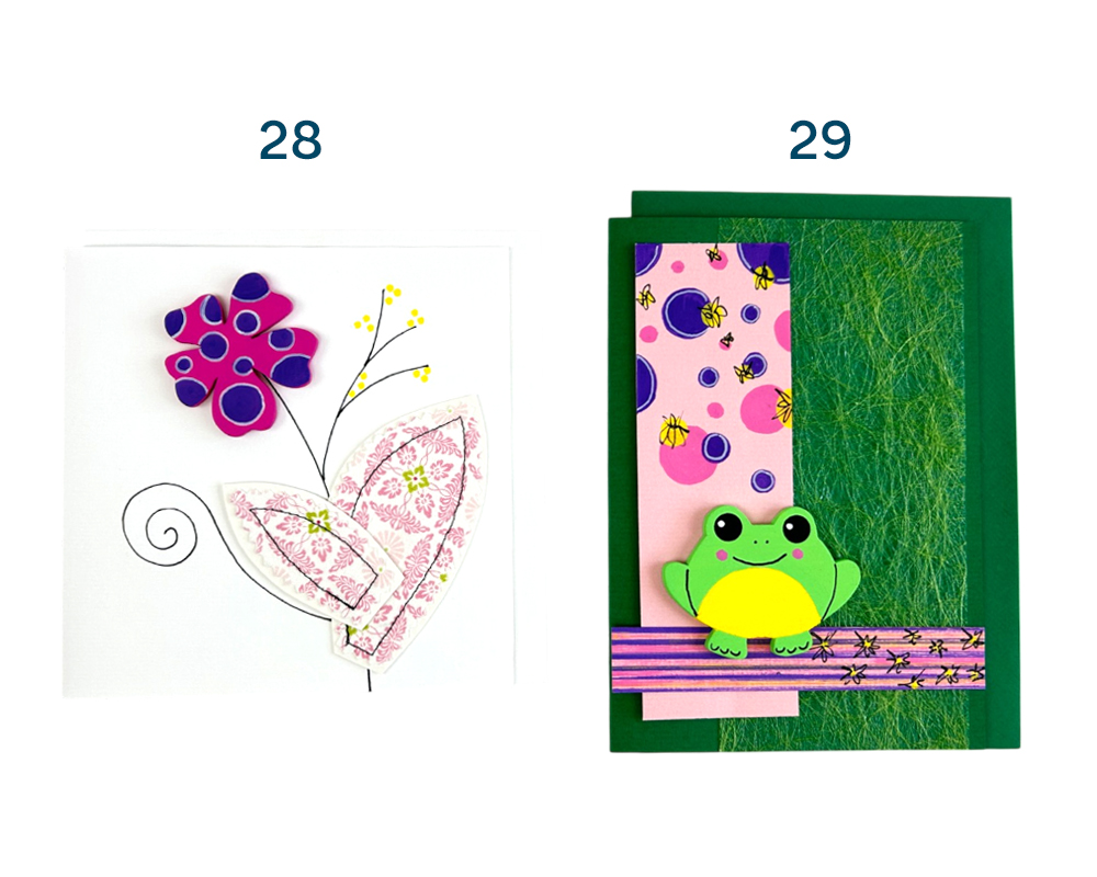 Karten 28-29: genäht, handbemalte Holzelemente