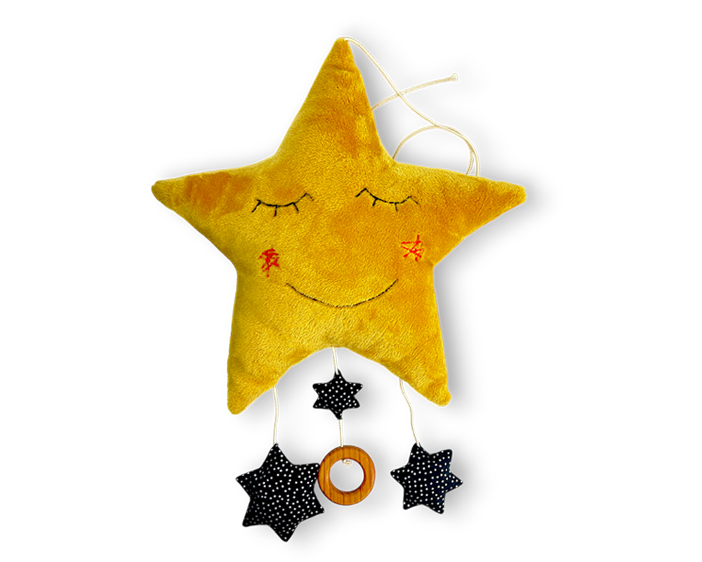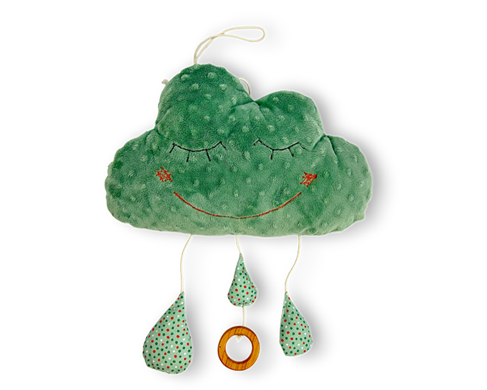 Die Schlafmusik-Spieluhr ist der ideale Schlafbegleiter für das Baby, welche für ruhige Nächte der Geborgenheit sorgt. Hergestellt aus flauschig weichem Noppen-Vlies und gefüllt mit Watte, nicht waschbar. Die Ziehkordel ist mit einem Holzring aus einheimischem Kirschbaumholz ausgestattet.